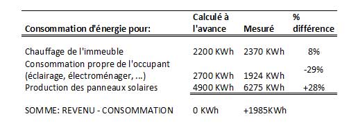 Si nous additionnons les productions et les consommations (SOMME) de cette construction Muller, nous constatons, après 1 an d’utilisation effective, qu’elle est en fait une véritable maison (NOM) (Zéro-au-compteur).